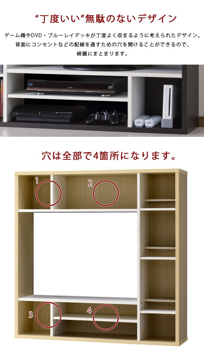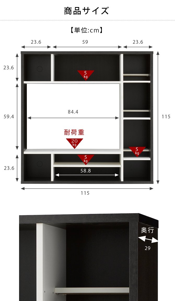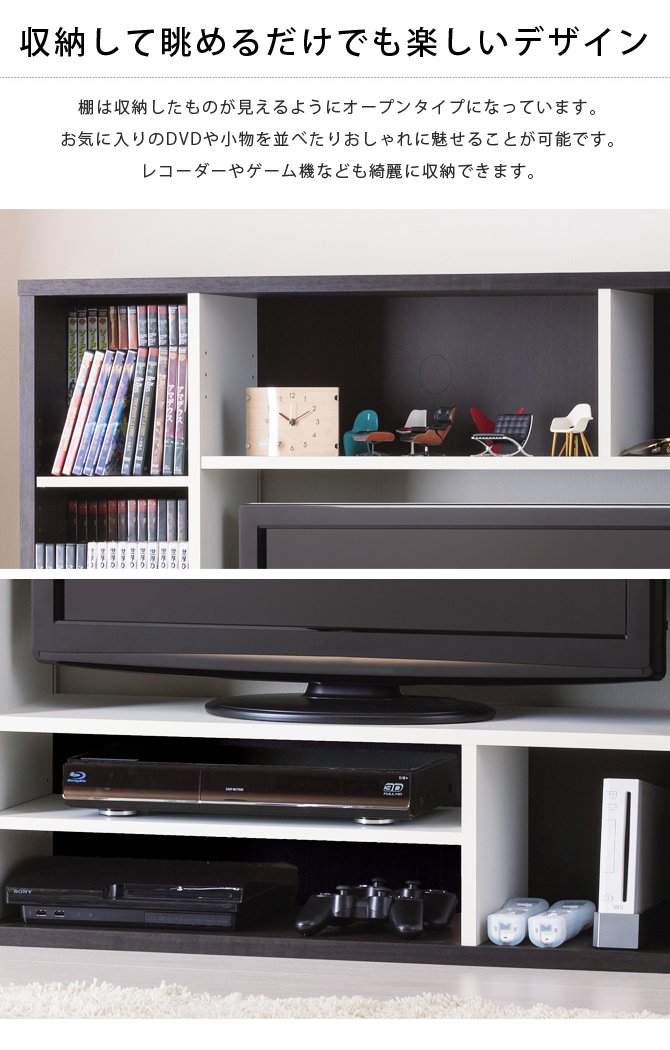 ※代引き不可商品となります。 お届について 玄関先のお届けになります。??????なしの?????等や玄関が2階にある等 配送困難な場合、別途費用が掛かりますので予めご確認をお願い致します。 これ1台で、テレビ、レコーダー、ゲーム機、DVD、マンガ本をまとめて収納出来ます。 1人暮らしや子供部屋にぴったり! 本棚部分は前後棚採用で収納力2倍。フラップでも使用出来ます。 本棚部分は左右どちらでも選択可能。 薄型TV:32Vまで対応可能。 本体:幅115×奥行29×高さ115cm 商品重量/(約)29kg プリント紙化粧繊維板/パーティクルボード お客様組み立て品(約60分) マレーシア ?商品画像は色合いや素材感が実際の商品と異なる場合がございます。 ?モニター?ディスプレイによっても写り方が変ります。予めご了承ください。