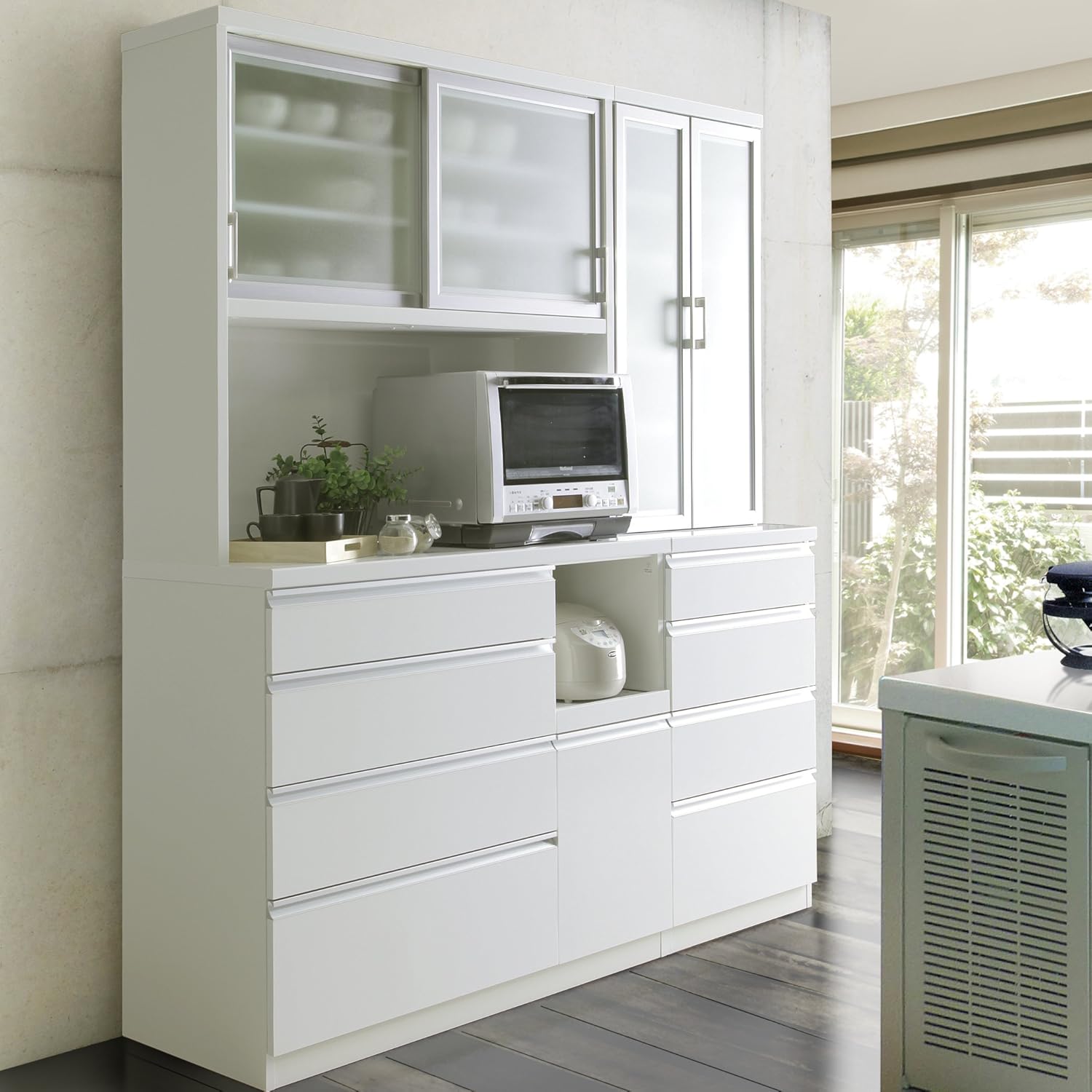 格安SALEスタート! 90H ホワイト 90H|ホワイト B01B7QV0FO ホワイト【幅90×高さ98cm】 90H キッチンカウンター グラッセ-食器棚